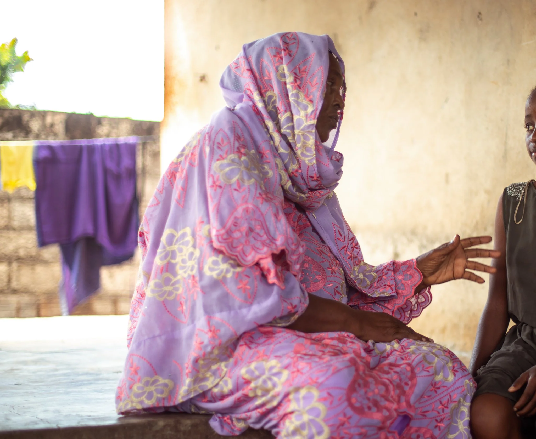 Kadi speaks to a young girl. Photo: Lamine Diao