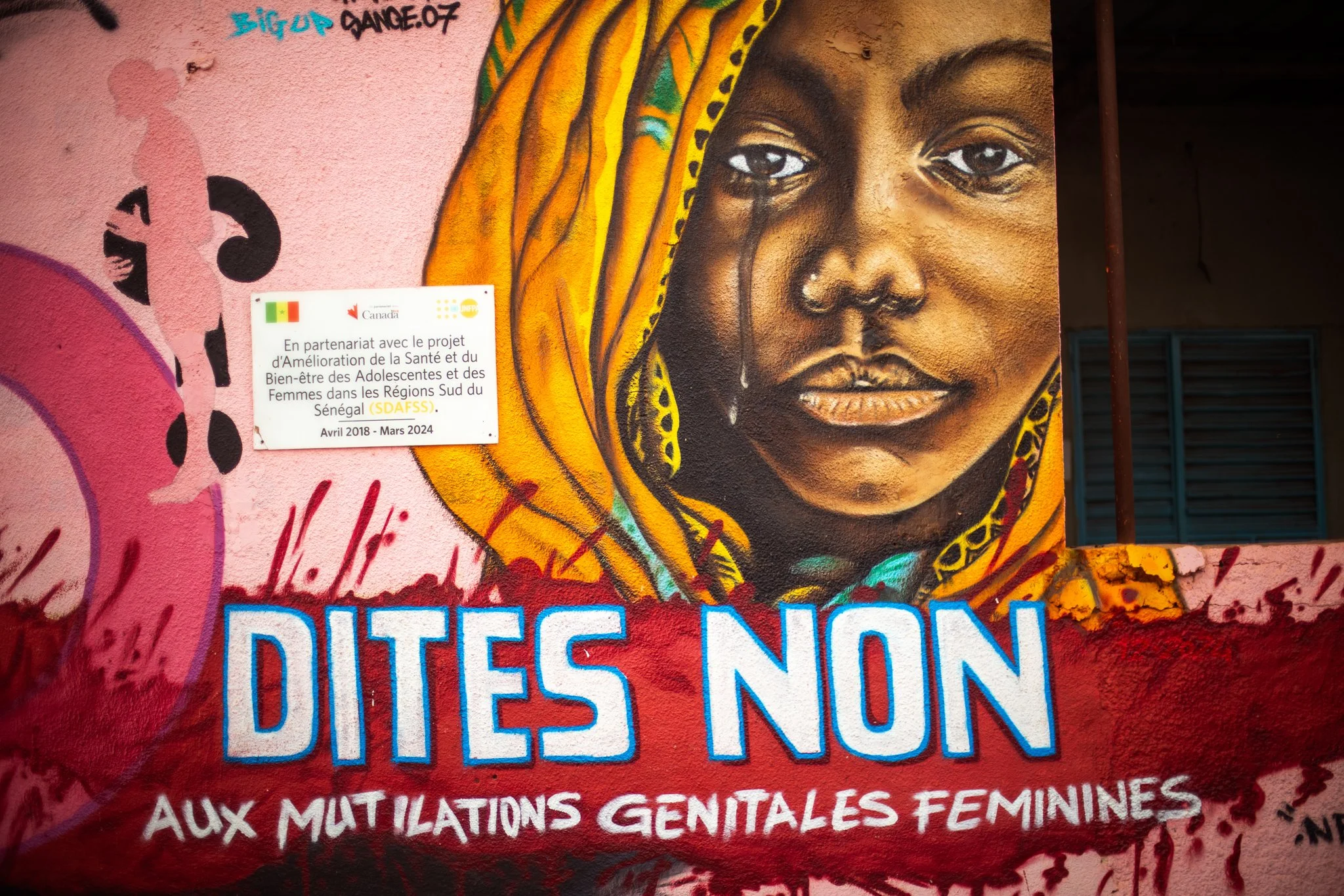 A mural at a youth centre in Kolda reads “Say not to Female Genital Mutilation”